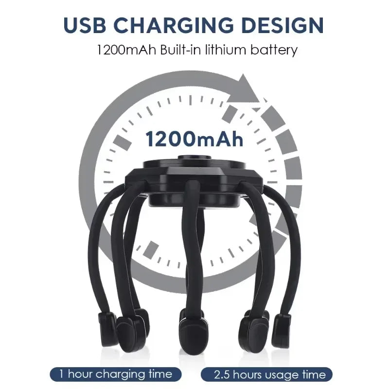 हेड मसाजर इलेक्ट्रिक अक्टोपस क्लाउ एन्टी स्ट्रेस हेयर मसाज रिचार्जेबल ब्लुटुथ थेरापी उपकरण हेड स्क्र्याचर स्क्याल्प मसाजर