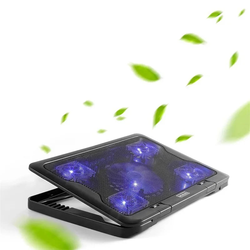 म्याकबुक ल्यापटप नोटबुक पेरिफेरल्सको लागि शान्त ल्यापटप कूलिङ प्याड एलईडी बेस स्ट्यान्ड २ USB पोर्ट पाँच ठूला कूलिङ फ्यान कूलिङ प्याड
