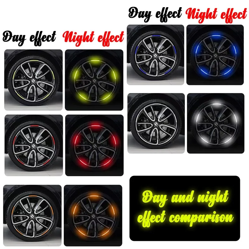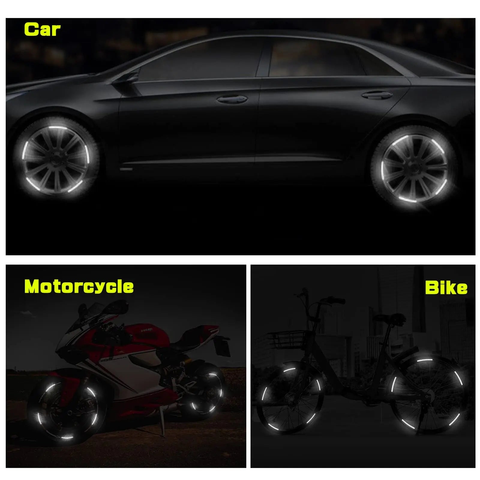 20Pcs Reflective Car Wheel Decorative Strip Stickers Motorcycle Wheel Hub Styling Decal Sticker Night Safety Reflective Decals